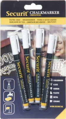 4 darabos krétamarker készlet. A csomag 4 db fehér krétamarkert tartalmaz. Vonalvastagság: 1-2 mm. Használható krétatáblákra és üveg felületekre egyaránt. Vízzel, illetve nedves ruhával könnyen lemosható.