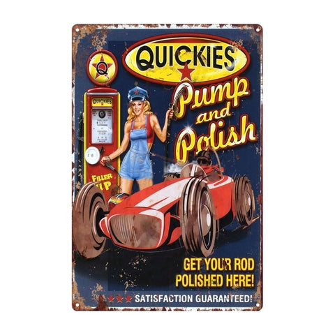 Retro dekor fémtábla, Quickies pump and polish, Méret: 20x30cm