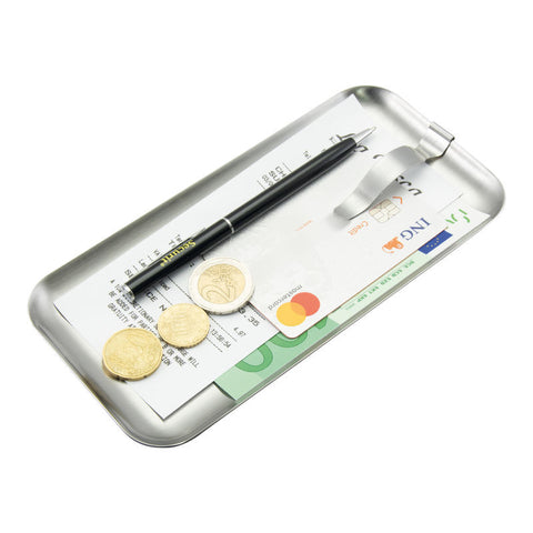 Különleges megjelenésű szálhúzott rozsdamentes acélból készült számlabemutató rugalmas csiptetővel ellátva!
